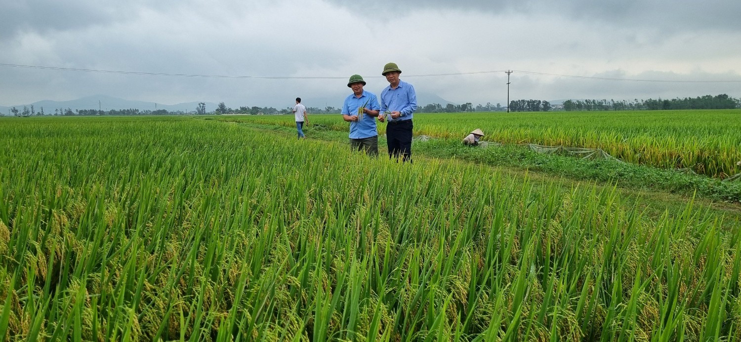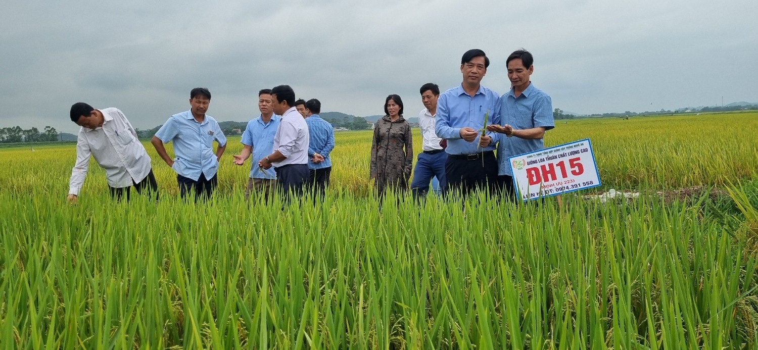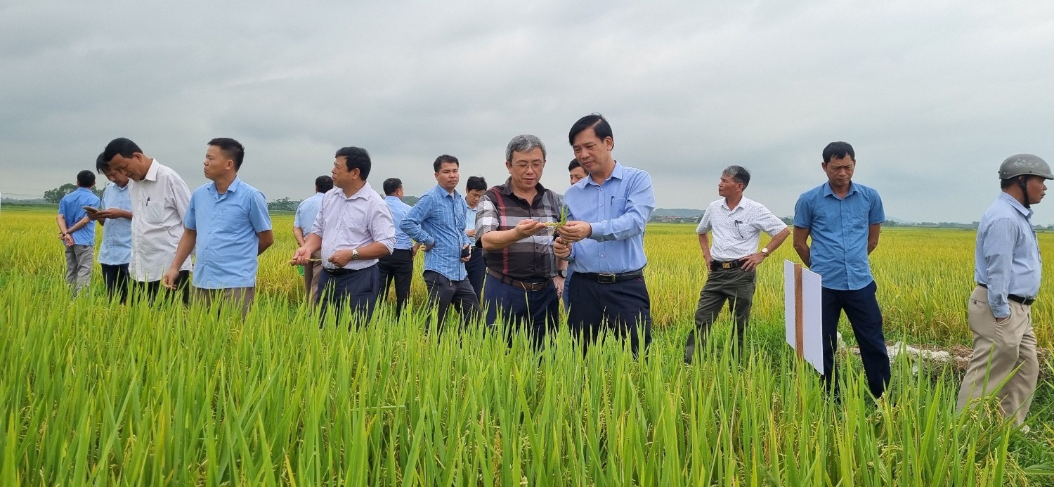 Lãnh đạo Trung tâm Khuyến nông kiểm tra lúa vụ xuân tại huyện Đô Lương