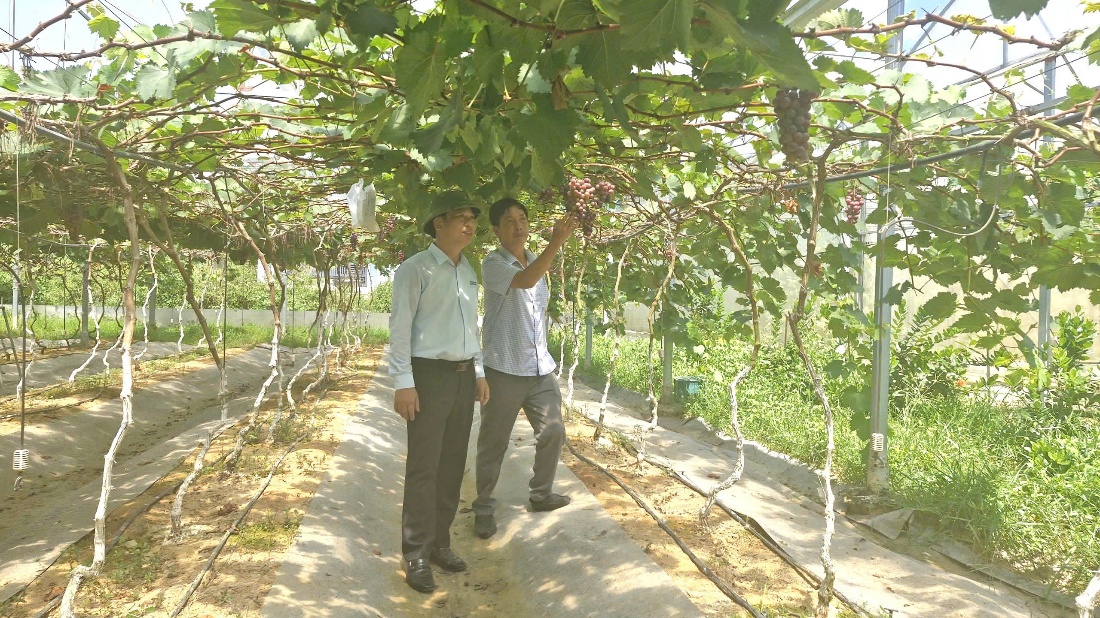Mô hình trồng nho ứng dụng công nghệ tưới nhỏ giọt theo tiêu chuẩn VietGAP của Trung tâm Khuyến nông tại hộ anh Nguyễn Văn Hoành, xóm Minh Xuân, xã Văn Thành, huyện Yên Thành