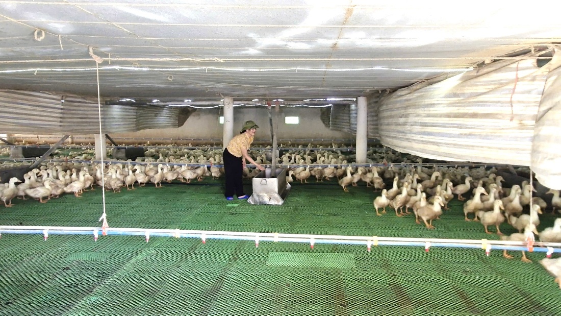 Mô hình chăn nuôi vịt (giống Cherry) thương phẩm trên nền chuồng sàn tại hộ anh Hoàng Văn Ngọc, xóm Quy Chính, xã Vạn An, tỉnh Nghệ An
