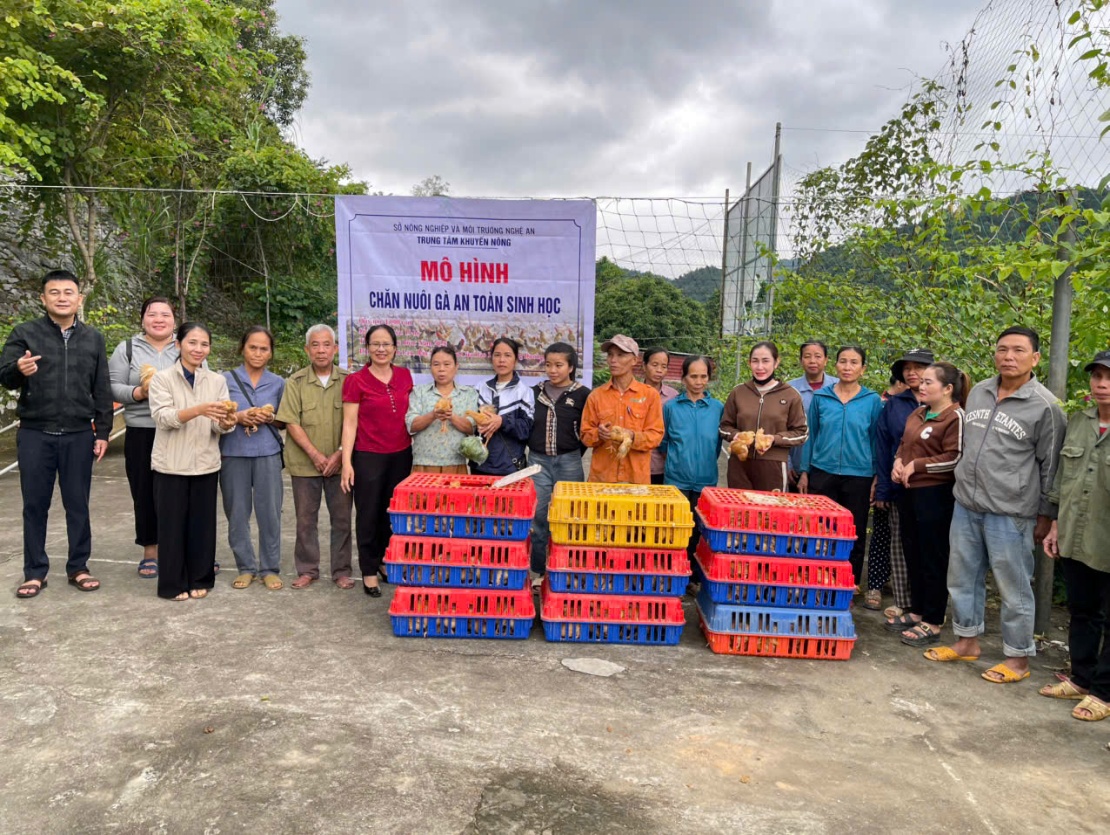 Trung tâm Khuyến nông Nghệ An giao gà giống cho mô hình chăn nuôi gà an toàn sinh học tại xã Tương Dương
