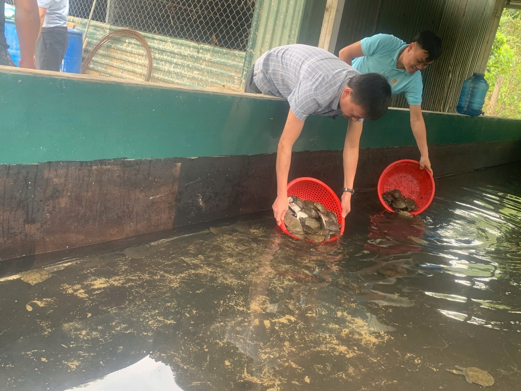 Trung tâm Khuyến nông thả giống ba ba gai tại thôn Na Chạng, xã Tiền Phong, huyện Quế Phong