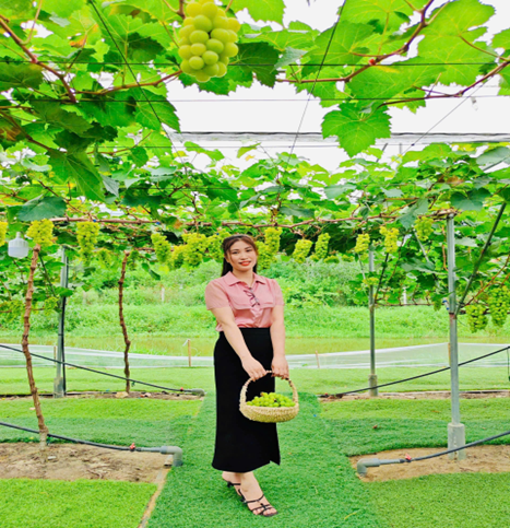 Bên cạnh giá trị kinh tế cao, mô hình trồng nho công nghệ cao của gia đình chị Hồng còn tạo dấu ấn đặc biệt trong việc thu hút khách du lịch. Nhờ cảnh quan đẹp mắt, những chùm nho sai trĩu quả dưới mái che nhà màng hiện đại, vườn nho trở thành điểm tham quan, chụp ảnh lý tưởng, thu hút đông đảo du khách trong và ngoài tỉnh, đặc biệt vào mùa thu hoạch. Nhiều trường học, hội nhóm, gia đình đã chọn nơi đây làm điểm đến trải nghiệm nông nghiệp cho học sinh, trẻ nhỏ. Du khách không chỉ được chiêm ngưỡng quy trình sản xuất nông nghiệp công nghệ cao, mà còn được tận tay hái nho, thưởng thức nho tươi ngay tại vườn và tìm hiểu cách chăm sóc cây theo tiêu chuẩn hữu cơ. Mô hình vì thế đã mở ra hướng đi mới – kết hợp nông nghiệp với du lịch sinh thái, góp phần làm phong phú hoạt động kinh tế nông thôn và quảng bá hình ảnh quê hương.