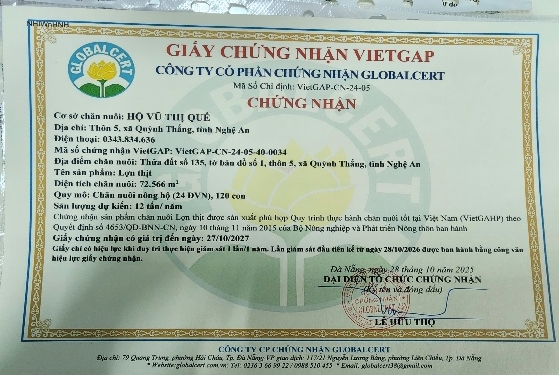 Kết quả thực hiện dự án “xây dựng mô hình chăn nuôi lợn thịt chứng nhận VIETGAHP gắn với liên kết tiêu thụ sản phẩm” năm 2025 tại Nghệ An