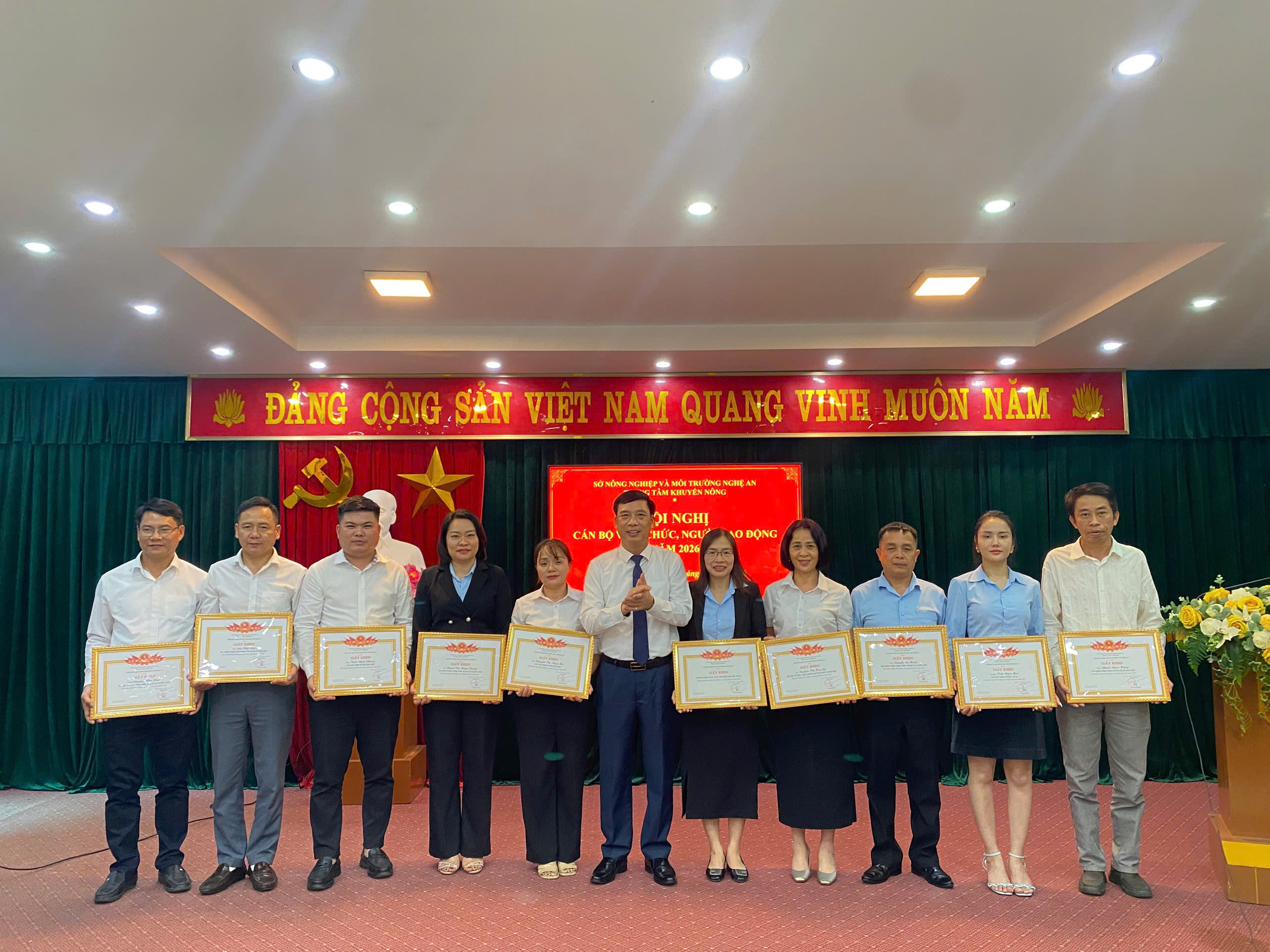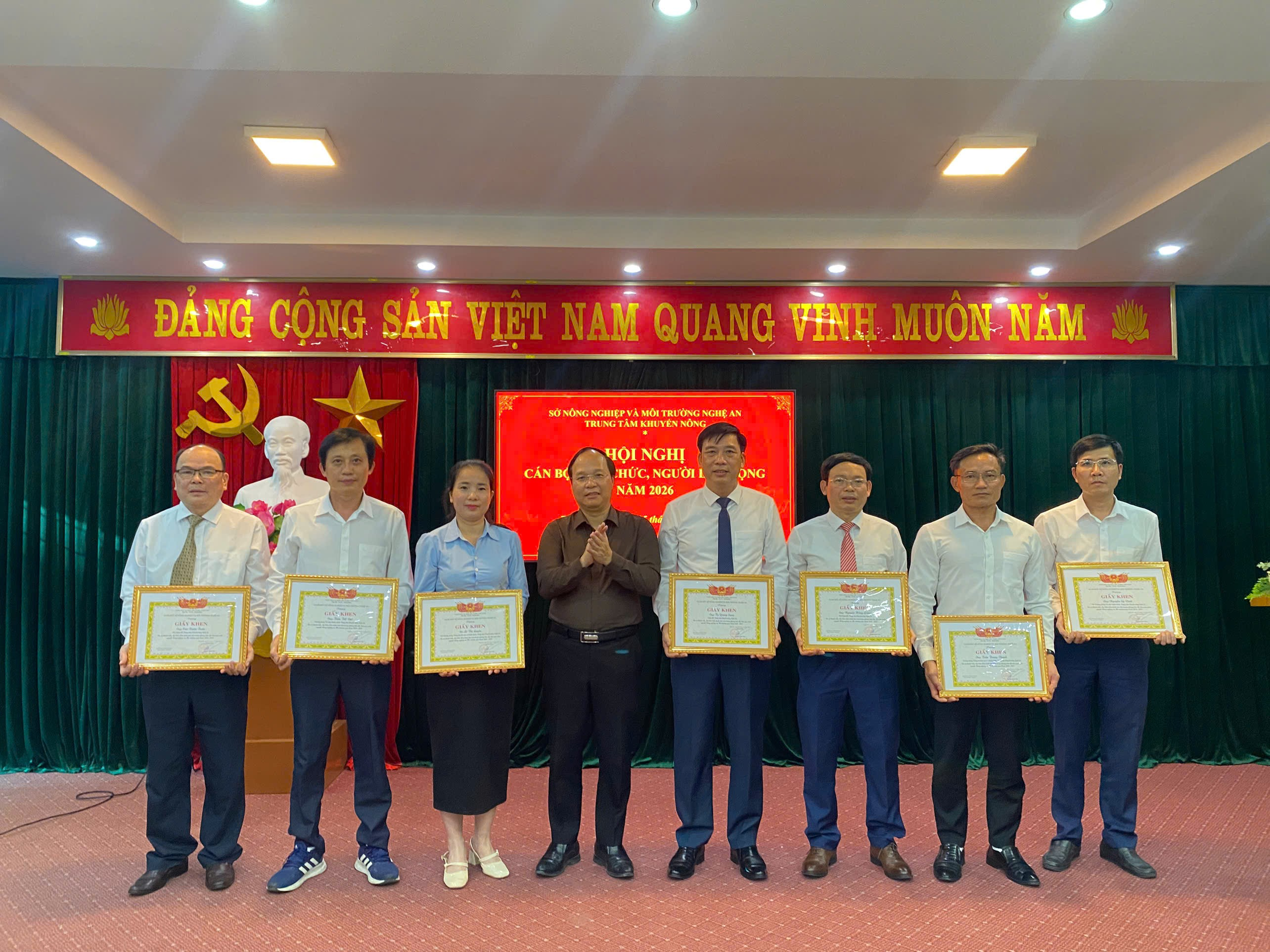 Nhân dịp này, hội nghị công bố các quyết định khen thưởng và biểu dương các cá nhân và tập thể của Trung tâm Khuyến nông có thành tích trên các lĩnh vực trong năm 2025.