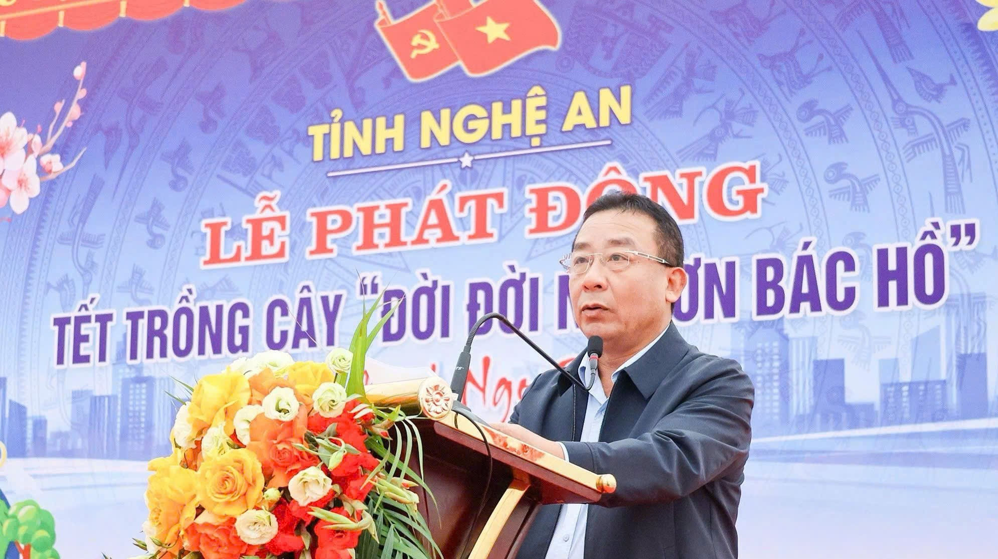 Phát biểu phát động Tết trồng cây, đồng chí Nguyễn Đình Hùng - Ủy viên Ban Thường vụ Tỉnh ủy, Phó Chủ tịch Thường trực Ủy ban MTTQ tỉnh kêu gọi tất cả các tầng lớp nhân dân, các tổ chức chính trị, xã hội và các đoàn thể trong tỉnh hãy phát huy truyền thống tốt đẹp của dân tộc, tích cực tham gia phong trào trồng cây, bảo vệ môi trường, góp phần xây dựng một Nghệ An phát triển xanh, bền vững. Đồng chí cũng khẳng định, công tác bảo vệ môi trường không chỉ là nhiệm vụ của riêng ai mà là trách nhiệm của toàn xã hội, của mỗi công dân, đặc biệt là thế hệ trẻ trong việc gìn giữ và phát triển hệ sinh thái tự nhiên cho tương lai