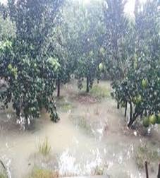 Vườn cây ăn quả bị ngập úng do mưa bão