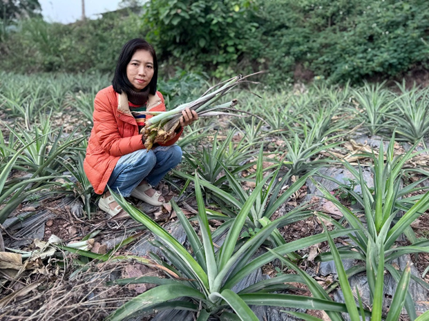 Chị Hồ Thị Lý xóm 1/5 xã Quỳnh Thắng, tỉnh Nghệ An kiểm tra ruộng dứa mới trồng của gia đình